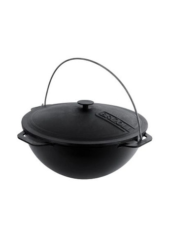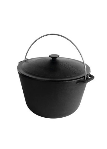Азиатский чугунный котел объемом 10 л. Укомплектован скобкой и чугунной крышкой-сковродой. Предназначен для приготовления блюд, нуждающихся в тушении, томлении или приготовлении в собственном соке, на костре или мангале. Толстые стенки и полусферическое дно аккумулируют тепло по всей поверхности котла и способствуют равномерному приготовлению пищи. Мясо, плов и другие блюда, приготовленные в котле из чугуна, особенно вкусные, сочные и имеют просто невероятный насыщенный аромат. Характеристики Объем: 10 л Вес: 7,71 кг Диаметр: 360 мм Толщина стенки: 3,8 мм Свойства: безопасная и экологически чистая посуда, природное органическое покрытие, обогащает пищу ионами железа, долговечна и износостойка. Подготовка новой чугунной неэмалированной посуды На подготовку лучше выделить отдельное время, не делая это тогда, когда посуда срочно нужна для приготовления пищи, лучше подготовить ее заранее, так как остывает чугун достаточно долго, а подготовить по инструкции ниже его нужно обязательно, очистив поверхность от заводских. После покупки чугунная неэмалированная посуда следует в первую очередь хорошо вымыть горячей водой с использованием моющих средств. При этом процессе можно использовать губку для мытья посуды или неметаллическую щетку. После мытья изделие нужно вытереть досуха чистым кухонным полотенцем. После высыхания необходимо прокалить данную кухонную утварь с обычной пищевой солью около 30 минут, обязательно практически постоянно помешивая при этом соль, чтобы она распределялась по всей поверхности. После прокаливания с солью использованную соль нужно выбросить, плиту выключить и оставить изделие остывать до комнатной температуры. В настоящее время можно заняться своими делами. После этого охлажденную посуду необходимо промыть под краном горячей водой и вытереть досуха чистым кухонным полотенцем. Теперь нужно нагреть изделие на плите до температуры свыше 200 ° C и нанести внутри небольшой слой растительного масла (желательно льняного). На котел нужно нанести масло и на боковые стенки, аккуратно и очень осторожно наклоняя посуду в разные стороны (как при жарке блинчиков) или нанести масло кулинарной кисточкой. Но помните о технике безопасности, чтобы не обжечься! Постепенно масло заполнит всю внутреннюю поверхность. Смазанный маслом котел прокалывайте на огне или плите (можно в духовке, если разрешают размеры) в течение 20-30 мин. Затем следует оставить остывать при комнатной температуре до полного застывания нанесенного слоя масла. Пунк 4 повторить хотя бы один раз (можно 2-3 раза). После выполнения всех вышеперечисленных пунктов инструкции и полного охлаждения чугунная посуда готова к использованию по своему прямому назначению. Вышеперечисленные действия по всем пунктам для подготовки посуды из чугуна к использованию выполняли и наши мамы, и наши бабушки. Также остались неизменными правила по уходу, подробно представленные чуть ниже. Они достаточно просты и их очень легко запомнить. Уход за чугунной неэмалированной посудой Чугунная посуда не предназначена для хранения в ней приготовленной пищи. Лучше переложить остатки в тарелки или судочки, а саму посуду после охлаждения вымыть по инструкции. Кстати, остывать он будет сравнительно долго. После каждого приготовления пищи нужно подготовить изделие к хранению по ин