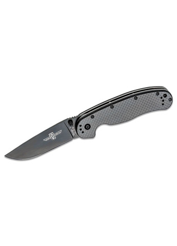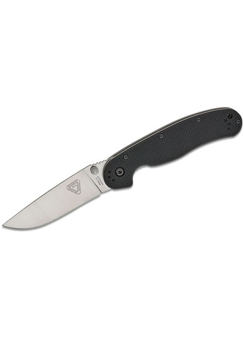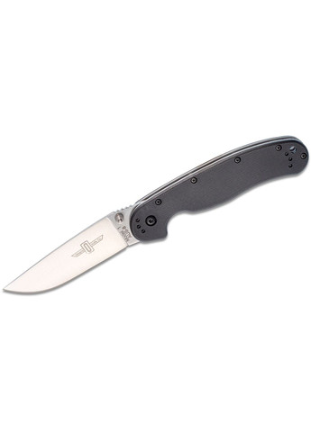 RAT1 — это складной EDC-нож, который был создан в сотрудничестве с Randall's Adventure Training group, которая проводит занятия по искусству выживания. Нож характеризуется гладким лезвием с профилем drop point , выполненным из нержавеющей стали AUS-8. Лезвие покрыто черным покрытием для защиты от коррозии. На лезвии имеется двухсторонний штифт, управляемый большим пальцем, благодаря которому нож легко открывается как правой, так и левой рукой. Рукоятка изготовлена из нейлона, армированного стекловолокном. Внутри стальные лайнеры и лайнер-лок . На рукоятке есть углубление для указательного пальца, что улучшает хват. Нож имеет пружинную клипсу, которая позволяет удобно носить нож, прикрепив его к ремню или краю кармана. Клипса двусторонняя и может крепиться в 4 положениях: лезвие вниз, лезвие вверх, правша или левша. В задней части ножа есть отверстие, через которое мы можем продеть страховочный трос. Технические данные Длина клинка: 92 мм Толщина клинка: 2,8 мм Сталь: Aus8 Клинок: гладкий Ручка: нейлон Замок: Liner Lock Открытие: штифт Общая длина: 219 мм Вес: 140 г Производитель: Онтарио, США