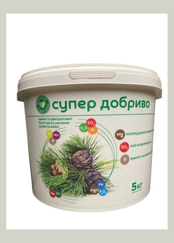 Внимание! Стоимость товара не включает в себя стоимость доставки! Оформляя заказ, Вы согласны с условиями оплаты и доставки. Дополнительная информация – в разделах: и ! Супер Удобрение для хвойных и декоративных многолетних растений SUPER SCANDIC МАГНИЙ. ПРЕДУПРЕЖДЕНИЕ ПОБУРЕНИЯ ХВОИ СЕРКА. СОПРОТИВЛЕНИЕ ЗАБОЛЕВАНИЯМ БОР. ИММУНИТЕТ НА ЗИМНИЙ ПЕРИОД Компонентный состав: азот – 9%, фосфор – 12%, калий – 25%, сера – 6,5%, магний – 2%, бор – 0,02%, марганец – 0,03%, цинк – 0,02 % Магний занимает важное место в процессе фотосинтеза. Большую часть элементов хвойные получают не из-за корней, а с помощью фотосинтеза. А этот процесс невозможен без магния, называемого минералом жизни. Он является центральным атомом в молекуле хлорофилла и трансформирует энергию света в органические вещества. Магний в составе удобрения способствует появлению новых верхушечных веток и наращиванию яркой изумрудной кроны. Если магния растению недостаточно, его побеги будут слабыми, а само растение станет еще и уязвимым перед грибковыми поражениями. Сера усиливает рост и развитие растений, интенсифицирует поглотительную деятельность корневой системы, способствует мобилизации из почвы питательных элементов (кальций, магний, железо), выступает незаменимым компонентом в составе 3-х важных аминокислот (цистеин, цистин и метионин), которые необходимы для вегетативной массы растений и необходима в процессе синтеза ферментов, стимулирующих защитные функции растений от болезней. Присутствие серосодержащих соединений в удобрении контролирует также устойчивость растений к стрессам и повреждения вредителями. Растение, которое страдает от нехватки серы, не способно усваивать азот в полном объеме, поэтому признаки дефицита серы очень схожи: хлороз (пожелтение) и извлечение молодых приростов, побеги становятся ломкими, ростовые процессы замедляются. Бор способствует усвоению питательных веществ корневой системой и улучшает образование и транспортировку углеводов от фотосинтезирующих частей растения до точек роста, корней и органов размножения. Низкая обеспеченность растений бором вызывает нарушение их анатомического строения: торможение и ненормальное развитие точек роста, голубовато-зеленую окраску молодых листьев (приростов). Корневая система развивается слабо, поражается гнилями, бактериозом и другими корневыми болезнями. Бор усиливает устойчивость растений к грибковым болезням и неблагоприятным факторам внешней среды, например слишком высоким или низким температурам, поэтому очень важно питание бором в критические периоды роста и развития растений и в период подготовки к зиме. Применение Культура Удобрения при посадке Основная подкормка (март-август) Хвойные на декоративные многолетние растения 40 г удобрения смешать с 10 литрами субстрата и добавить в посадочную яму 30 г – молодые растения (высотой до 0.5 м) 50 г – старшие растения (высотой 1 м) Уход за растениями на участке: удобрение равномерно распределите вокруг растения, слегка перемешайте с верхним слоем почвы и полейте водой. Первую подкормку растений проводят в марте (после таяния снега) и далее несколько раз с интервалом раз в месяц или 30-45 дней. Использовать 2-4 раза в сезон. Страна происхождения сырья: Финляндия Препаративная форма – гранулы
