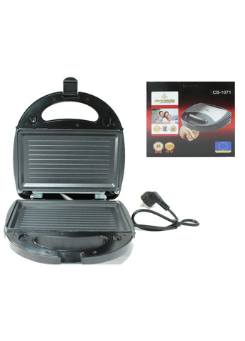 Мультимейкер Crownberg CB 1071 3в1 электрическая вафельница гриль сэндвичница бутербродница бельгийская вафля мультипекарь Гриль сэндвичница Crownberg CB 1071 - многофункциональное устройство предназначенное для приготовления не только бельгийских вафель, но и вкусных бутербродов, хрустящих тостов, сандвичей, ароматной выпечки, мяса, рыбы, овощей на гриле и т.д. С двух сторон прибора размещены нагревательные элементы в виде металлического тена и формы-пластины, которые соприкасаются с приготовляемыми продуктами и сверху и снизу. Это обеспечивает быструю и равномерную готовку в Crownberg CB-1071 без необходимости переворачивать приготовляемые блюда. Гриль сэндвичница 3 в 1 Crownberg CB-1071 имеет 3 типа пластин: "Вафли" ― приготовление ароматных брюссельских или вафель, которые станут отличным десертом, или заменят на завтрак привычные оладьи; "Сэндвичи" ― используя тостерный хлеб прямоугольной формы, вы приготовите настоящие английские сэндвичи со всевозможными начинками. Во время приготовления они разделяются на красивые треугольные кусочки; "Гриль" ― универсальная насадка. Ее ребристая поверхность создает аппетитный рисунок в виде полос. Подрумянить сосиски, кусочки хлеба, лаваш и даже приготовить яичницу ― те немногие вещи, которые может настоящий гриль. Формы легко меняются для приготовления того или иного блюда, например, с вафельницы на гриль, или с гриля на сендвичницу. Для чистки прибора и быстрой смены панелей в сэндвичнице имеется специальный кнопочный механизм. В каждой форме предусмотрены ложбинки на стекания жира и лишней жидкости, особенно это полезно при приготовление на гриле. Прибор обладает мощностью 750 Вт, двумя индикаторами работы, автоматическим термостатом, что обеспечивает постоянную поддержку температуры и защиту от перегрева. Насадки изготовлены из алюминия с антипригарным покрытием, что позволяет готовить с минимальным использованием жиров. Корпус изготовлен из термостойкого пластика. Преимущества: Имеет 3 типа сменные пластины: вафельница, сэндвичница и гриль; Антипригарная поверхность; Простота в использовании и обслуживании; Позволяет готовить здоровую пищу без использования масла; Безопасна в использовании. Основные характеристики: Напряжение: 220-240 В; Мощность: 750 Вт; 2 индикатора работы; 3 сменные пластины: вафельница, сэндвичница и гриль; Антипригарная поверхность: да Автоматический контроль температуры: да. Комплектация: Гриль сэндвичница 3 в 1 Crownberg CB-1071. Гриль панели (2 шт.). Сэндвич панели (2 шт.). Панели для вафель (2 шт.). Упаковка.