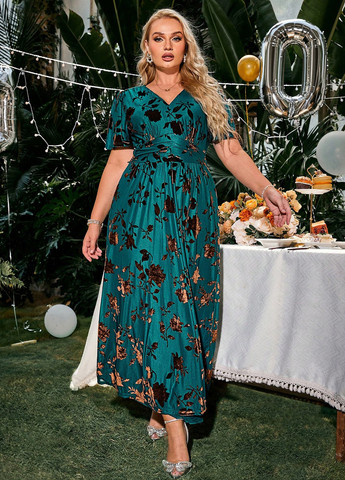 Материал Полиэстер, Шифон, Трикотаж, Вискоза, Эластан / Цвет Изумрудный / Фасон Клеш, Колокол, Ампир / Длина изделия Макси / Стиль Праздничный, Коктейльный, Вечерний