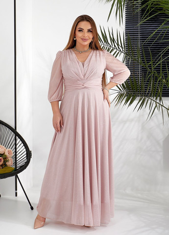 Платье в элегантном стиле: короткие рукава, приталенный лиф, пояс на талии, струящаяся юбка меди.