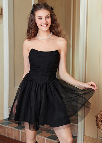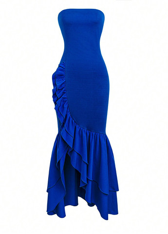 Это мини-платье имеет дизайн, вдохновленный Y2K. Оно подходит для вечеринок и вечерних выходов. Платье имеет облегающий крой. Оно включает в себя вырез без бретелек и естественную среднюю талию. Ткань средней эластичности. Детали включают в себя дизайн с открытой спиной, сборчатую отделку и разрез на бедре. Подол имеет форму карандаша.