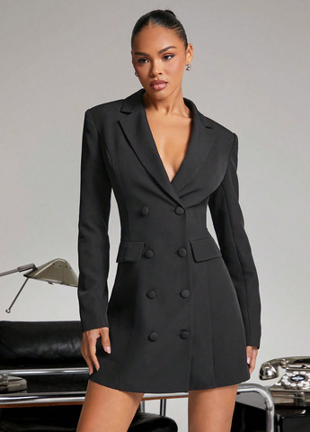 Материал Полиамид, Вискоза / Цвет Черный / Фасон Платье-жакет / Длина изделия Мини / Стиль Деловой, Повседневный, Праздничный, Вечерний