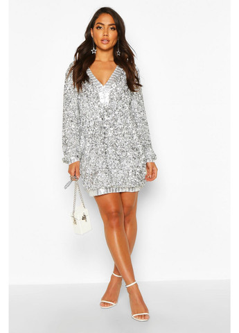 Материал Полиэстер / Цвет Серый / Фасон Платье-свитер / Длина изделия Мини / Стиль Коктейльный, Вечерний, Праздничный