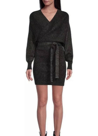 Женское платье-свитер Gianni Bini Alston, черно-серебристое эластичное трикотажное зимнее платье. Идеально подходит для праздничной вечеринки. Длинные рукава, завязка на талии, глубокий V-образный вырез спереди и на спине. Свободный верх, эластичная юбка снизу.