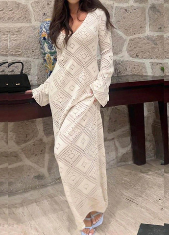 Материал Полиэстер / Цвет Кремовый / Фасон А-силуэт, Платье-свитер / Длина изделия Макси / Стиль Праздничный, Вечерний, Кэжуал