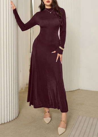 Женское бархатное платье – элегантная модель, сочетающая комфорт и изысканность. Имеет приталенный силуэт, красиво подчеркивающий фигуру, длинные рукава и высокий воротник-стойку.