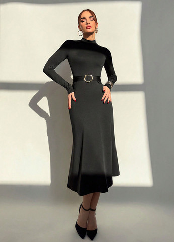 Платье выполнено из мягкого эластичного бархата, который приятен к телу и создает роскошный эффект благодаря легкому блеску ткани. Со стороны – небольшой разрез, придающий образу женственности и привлекательности.