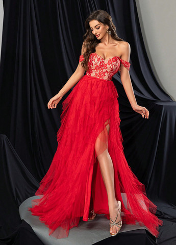 Материал Полиэстер / Цвет Темно-красный / Фасон Силуэтная, Платье-кейп / Длина изделия Макси / Стиль Вечерний