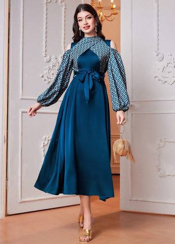 Элегантное женское приталенное платье Chiquease. Платье с воротником-стойкой и длинными расклешенными рукавами. Высокая талия и узкий подол. Платье выполнено из трикотажной ткани на основе полиэстера и эластана. Подходит для торжественных случаев. Платье выполнено в стиле колор-блок. Рекомендуется машинная стирка.
