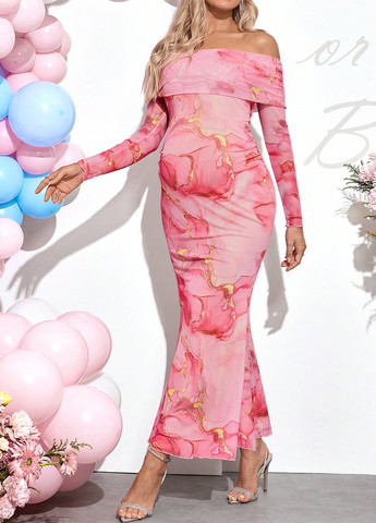 Материал Полиэстер, Трикотаж / Цвет Розовый / Фасон Силуэтная, С открытыми плечами / Длина изделия Макси / Стиль Вечерний, Кэжуал