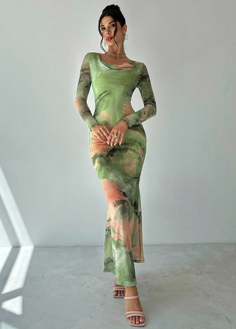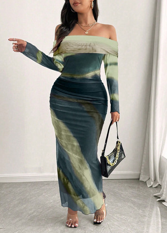 Женское платье макси Celure с принтом тай-дай. Это модное платье макси с принтом тай-дай и открытыми плечами. Рукава стандартной длины и узкий подол. Платье облегающего кроя. Материал – высокоэластичный трикотаж. Уход: машинная стирка или профессиональная химчистка.