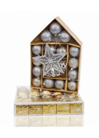 Стильное серебристое украшение для Вашей елки! Данный набор содержит все необходимое для создания праздничного и блестящего декора. В комплект входять 15 серебристых шариков с разной текстурой (матовые, блестящие, рельефные) и большая ажурная верхушка-звезда. Идеально подходит для создания единого стиля прикраси.