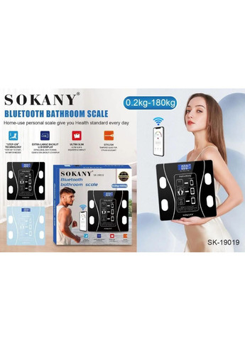 Смарт-весы до 180 кг Sokany — это современное решение для тех, кто следит за своим здоровьем. Они измеряют 13 ключевых параметров тела, включая вес, индекс массы тела, процент жира и воды, а также мышечную и костную массу. Данные автоматически передаются через Bluetooth в мобильное приложение, которое можно бесплатно скачать. Поверхность выполнена из закалённого стекла, а противоскользящие ножки обеспечивают безопасность при использовании.