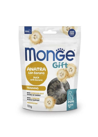 Одной из уникальных особенностей этих батончиков есть использование как единственного источника белка, легкоусвояемого и биологически ценного мяса утки. Мясные батончики Monge Gift производятся без использования зерновых продуктов (глютена), искусственных красителей и сахара, что делает их идеальным выбором для животных с пищевыми аллергиями и особыми потребностями в питании. Купить лакомство для собак от итальянского бренда Monge – это подарить четырехлапому другу не только приятное угощение, но и позаботиться о его здоровье и хорошем самочувствии! Чем полезно лакомство для собак в виде мясных батончиков? Источник высококачественного белка для формирования мышц и укрепления костей. Витамины укрепляют иммунитет, а источники энергии поддерживают физическую активность. Жевание лакомства доставляет удовольствие и способствует естественной очистке зубов и массажу десен. Вкусный и ароматный мотивационный стимул при дрессировке. Эффективный способ поощрения за хорошее поведение. Достоинства и особенности: изготовлены из натуральных ингредиентов; без искусственных добавок, красителей и консервантов; гипоаллергенные продукты – без глютена; способствуют поддержанию мышечной массы; обеспечивают блеск и здоровье шерсти; укрепляют защитные силы организма; полезное и вкусное дополнение к рациону. Ингредиенты: Свежее мясо 89% (утка 14%), гидролизат белков животного происхождения (курица и свинина), минеральные вещества, мука из водорослей (спирулина – Arthrospira platensis 1%). Гарантированный анализ: Сырой белок: 37%, сырая клетчатка: 1%, сырой жир: 26%, сырая зола: 7%, влажная: 27%. Пищевые добавки/кг: Витамин А(ретинилацетат) 5000 МЕ, витамин D3 500 МЕ, витамин Е (ал-рац-альфатокоферилацетат) 50 мг, таурин 1000 мг. Метаболизированная энергия: 3575 ккал/кг. Рекомендации по кормлению: Суточная порция еды для взрослой собаки массой 12 кг составляет 1 шт. в день. Рекомендуется дополнять и корректировать ежедневный рацион, используя полнорационный корм. После открытия упаковки следует использовать продукт в течение 4 недель. Важно обеспечить доступ к свежей и чистой воде. Обращаем внимание, что этот корм предназначен исключительно для собак и не подходит для употребления людьми. Фасовка: 100 г
