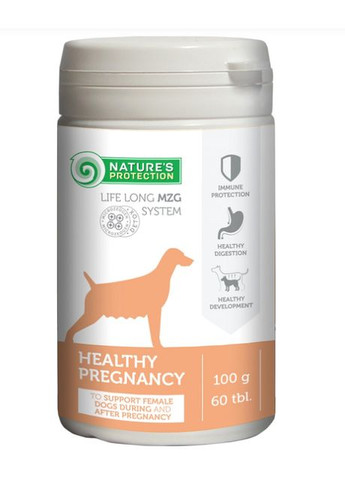 Nature's Protection Healthy Pregnancy – пищевая добавка для самок в период беременности и лактации Для здорового развития щенков и поддержания здоровья самки В сенситивный период беременности и лактации важно обогатить рацион самки витаминами и минералами. Пищевая добавка содержит высокое количество кальция, необходимого для здорового развития щенков. Для укрепления иммунитета Составляющие добавки помогают укрепить иммунную систему питомца. Все необходимые элементы – в одной пищевой добавке Пищевая добавка обеспечивает самку и щенков необходимыми витаминами, облегчает течение беременности и период лактации.