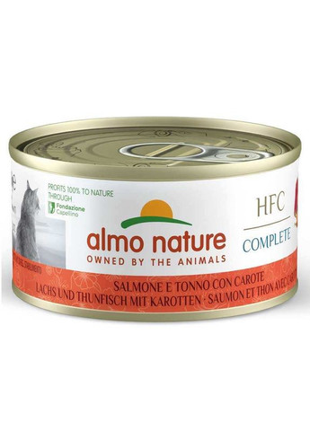 HFC Cat Complete – это линейка влажных кормов Almo Nature, которая предлагает полнорационные формулы. Это означает, что их можно использовать в качестве единственного источника питания, без необходимости добавлять другие корма. Преимущества влажного корма для взрослых кошек Almo Nature HFC Complete: Курица – единственный источник животного белка, делающий корм идеальным для кошек с пищевой чувствительностью. Зеленые бобы обеспечивают дополнительную клетчатку для здоровой пищеварительной системы. Качественные ингредиенты гарантируют натуральность и безопасность корма. Рецептура не содержит злаков, подходящих для животных, чувствительных к зерну. Формула не требует дополнительной подкормки, поскольку обеспечивает все потребности кота. Без добавления искусственных консервантов, красителей и ароматизаторов. Корм обеспечивает организм легкоусвояемым белком для поддержания мышечной массы и общей энергии. Ищете вкусный и качественный корм для котиков? У нас можно купить влажный корм для кошек, который обеспечит сбалансированное питание, поддержит здоровье и энергию пушистых питомцев. Состав: курица 55%, куриный бульон 33%, крахмал тапиоки, зеленые бобы 4%, подсолнечное масло, минералы, витамины. Пищевые добавки: витамины А 8820 IU, D 328 IU, Е 48 IU, цинк 57 мг, железо 52 мг, марганца 4,7 мг, медь 1,87 мг, йод 0,52 мг, таурин 740 мг. Гарантированный анализ: белки 14,5%, клетчатка 0,5%, жиры 2%, зола 1,5%, влажная 81,5%, кальций 0,3%, фосфор 0,2%. Энергетическая ценность: 774 ккал. Рекомендации по кормлению: Чтобы обеспечить коту сбалансированное питание, производитель рекомендует сочетать Almo Nature HFC Complete с полноценным сухим кормом. 110 г влажного корма (Almo Nature HFC)+35 г сухого корма. Эти нормы являются ориентировочными. Всегда корректируйте порцию в зависимости от веса, возраста, физического состояния и уровня активности вашего любимца. Также обеспечьте ему постоянный доступ к свежей питьевой воде. Хранить в сухом и прохладном месте при температуре от 0 до 30 градусов С.