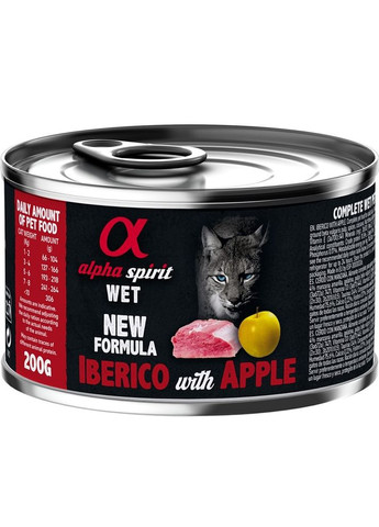 Alpha Spirit Iberian Pork with Yellow Apple Полнорационный влажный корм со свининой и свежими яблоками для взрослых кошек. Сочная ароматная иберийская свинина (93%) и свежие желтые яблоки. Создано для взрослых кошек всех пород Иберийская свинина – единственный источник мясного протеина – идеально для кошек с чувствительным пищеварением. Изготовлен в Испании из ингредиентов премиального качества Рацион с высокой питательной ценностью Вкусная сбалансированная рецептура в виде паштета Добавка таурина – важна для здоровья. Без зерна и глютена Без искусственных усилителей вкуса и ароматизаторов. Без добавления воды Нежная и вкусная рецептура влажного корма Альфа Спирит с иберийской свининой и свежими желтыми яблоками в форме паштета предназначена для взрослых кошек всех пород. Apple для взрослых кошек готовится из ингредиентов премиального качества с добавкой таурина, где единственным источником протеина является иберийская свинина (93%). Ассортимент полнорационных кормов Альфа Спирит производится из ингредиентов, признанных пригодными для употребления в пищу людям и сбалансированных в непревзойденно вкусных и полезных рецептурах. Alpha Spirit – это излишки, поступающие от проверенных поставщиков – из производств продуктов питания для людей, гарантируя, что ингредиенты в составе корма для вашего любимца так же качественны как и еда. которую потребляете вы, Состав: свинина: 93% (80% мясо, легкие, желудок, печень), яблоки 4%, желатин, измельченная мякоть свеклы, специи, маниок. Пищевые добавки (в 1 кг): Витамины (МЕ): витамин A(3a672a) 7471.0, витамин D3(3a671):445.0, витамин E(3a700):149.0. Минералы (мг): 3b503 (Mn:12.0), 3b103 (Fe:29.0), 3b405 (Cu:2.3), 3b603 (Zn:30.0), 3b201 (I:0.5). Таурин: 0,4%. Аналитические составляющие: сырой протеин 10.8 %, сырая клетчатка 1.3 %, сырой жир 5.7 %, сырая зола 1.6 %, влажность 75.6 %, кальций 0.22 %, фосфор 0.17 %. Обменная энергия в 1 кг: 1145 ккал – 4770 кДж. Инструкция по кормлению: корм подходит для кошек всех пород. Рекомендуется подавать корм комнатной температуре. После открытия банки храните корм в холодильнике и используйте в течение 24 часов. Альфа Спирит: влажные корма Alpha Spirit можно чередовать между собой без ограничений, следуя рекомендациям по общей порции суток.