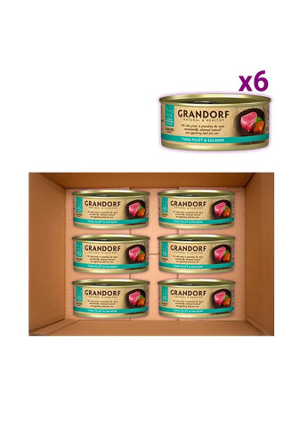 Grandorf филе тунца и лосось для взрослых коте всех пород – роскошный морской вкус для твоего кота! 🐾💛 Этот влажный корм класса холистик содержит 75% высококачественного мяса – нежного тунца и лосося, которые дарят отличный вкус и поддерживают здоровье. Благодаря ингредиентам HUMAN-GRADE корм содержит только натуральные компоненты, проходящие деликатное приготовление в собственном соке для сохранения питательных веществ. Особенности состава: 100% натуральных ингредиентов: свежее филе тунца и лосося. Без зерновых (GRAIN FREE): идеальный выбор для кошек с чувствительным пищеварением. Ингредиенты HUMAN-GRADE: удовлетворяют стандартам качества человеческих продуктов. Нежное приготовление в собственном соку: для сохранения всех полезных свойств. Преимущества корма: 75% мяса в составе: тунец + лосось. Природный вкус и аромат: даже самые взыскательные коте оценят! Без вредных добавок: никаких гормонов, антибиотиков, консервантов или красителей. Не содержит: ❌ ГМО ❌ Зерновые ❌ Антибиотики ❌ Консерванты ❌ Красители и ароматизаторы Условия хранения: Хранить при температуре от 0°С до 25°С и относительной влажности до 75%. ✨ Закажи Grandorf Tuna & Salmon прямо сейчас! Подари своему коте 😺 полезное и вкусное морское питание. Рекомендации по кормлению Вес кота Суточная норма до 3 кг – 1 банка 3-5 кг – 2 банка от 5 кг – 3 банка