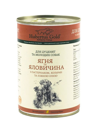 Hubertus Gold Ягненок и говядина с пастернаком, кольраби и льняным маслом - консервированный корм премиум класса, который отличается высококачественными отборными ингредиентами, высоким содержанием мяса говядины и ягненка (не менее 70%), а также современными технологиями изготовления. Это делает консервы полноценным и вкусным питанием для растущих молодых собак, обеспечивает их правильное развитие, хорошее пищеварение и прекрасную жизненную активность. Также корм способствуют здоровью кожи и прекрасному блеску шерсти животных. Корм разработан немецкими специалистами при участии ветеринаров и диетологов для удовлетворения всех потребностей собак. Корм является полнорационным и имеет сбалансированный состав, поэтому его можно применять в виде основного корма, а также как дополнительное питание при использовании сухого корма Hubertus Gold Junior. Преимущества Hubertus Gold Ягненок и говядина с пастернаком и кольраби: В основе корма мясо говядины и ягненка, сортов с низким содержанием жира Все компоненты корма легко усваиваются Высокое содержание белка (не менее 70%) обеспечивает необходимое формирование скелета и мышечной массы молодых собак Льняное масло обеспечивает организм растущих собак незаменимыми жирными кислотами Омега-3 и Омега-6 Витамины, минералы и микроэлементы способствуют улучшению иммунитета, пищеварения и хорошему обмену веществ Пастернак обладает спазмалитическим действием, улучшает перистальтику кишечника и укрепляет иммунитет Кольраби улучшает обмен веществ, нормализует работу желудочно-кишечного тракта Корм изготовлен по специальной технологии, позволяющей сохранить все полезные вещества Контроль качества на всех этапах производства корма Не содержит глютен, искусственные красители, ароматизаторы и консерванты Состав: мясо говядины, ягненок и субпродукты (сердце, печень, легкие, рубец), бульон, пастернак, кольраби, яблоки, минеральные вещества, льняное масло. Пищевые добавки (на 1 кг): витамин D3 - 200 МЕ, цинк - 15 мг, марганец - 3 мг, йод - 0,75 мг. Аналитический состав: серой белок - 11,5% сырой жир - 7,9% сырая зола - 2,3% сырая клетчатка - 0,5% влажность - 75,0% Рекомендации по кормлению: можно применять как основной и полнорационный корм для щенков и молодых собак. Также совместим в использовании с другими кормами при соответственным образом сбалансированном рационе. Корм скармливают в готовом виде, для правильного переваривания он должен быть комнатной температуры.