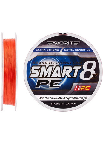 Шнур Favorite Smart PE 8x 150м (red orange) #0.5/0.117mm 8lb/4.1kg 1693.10.79 – восьмижильная модель для максимальной дальности заброса и полного контроля над приманкой. Диаметр: 0.117 мм Количество волокон: 8 Материал: PE Разрывная нагрузка: 4.1 кг Размотка: 150 м Тест: 8 lb Цвет: Красно-оранжевый Бренд: Favorite Страна регистрации бренда: Украина