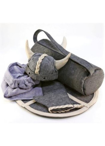 В нашем магазине Вы можете приобрести разные вариации подарков. Данный набор - оригинальный подарок и незаменимый банный аксессуар. Все банные атрибуты набора помещаются в сумку, внутрь которой вшит водонепроницаемый ацетат. Он позволяет спокойно переносить влажные и полностью мокрые вещи без боязни, что влага пропитает сумку. В набор входит: - шапка Викинга универсального размера, - коврик диаметром – 60 см, - рукавица с декором - сумка со вставкой на молнии (размер: длина – 55 см, диаметр – 20 см, длина ручки – 80 см) - махровое парео 140*70 см