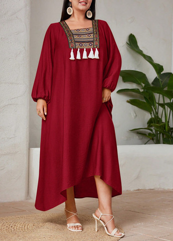 Цвет Красный / Материал Штапель / Принадлежность Женщинам / Длина изделия Миди и ниже колена / Длина рукава Длинный