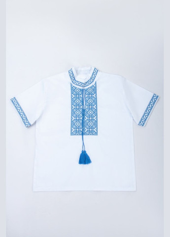 Вышиванка для мальчиков с коротким рукавом, изготовленная из полотна "Поликоттон". Поликоттон – износостойкий, прочный материал, который долго прослужит, не теряя своего первоначального вида. В этой ткани гигроскопичность и воздухопроницаемость хлопковых волокон дополнена практичным и прочным полиэстером. Данная модель прямого кроя, имеет воротник-стойку, рукава и перед вышиванки украшеный вышитым орнаментом. Полотно: поликоттон Состав: 75% хлопок, 25% полиэстер. Вышитый орнамент: машинная вышивка Рекомендации по уходу: стирать при температуре не более 30°C. Допускается стирка в режиме "ручная" или "деликатная", вышивку гладить только по изнаночной стороне.