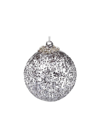 Елочный шар с декором из бусин и страз 10 см, цвет - жемчужный белый