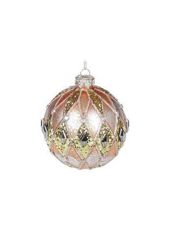 Елочный шар 8 см красный антик с декором из страз и бусин