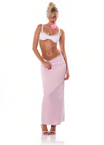 Цвет Пудровый / Фасон Карандаш / Высота посадки Высокая талия / Длина изделия Миди и ниже колена / Материал Креп