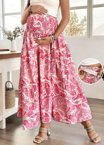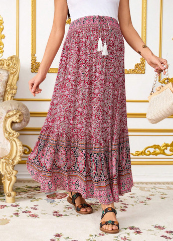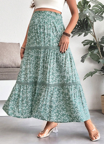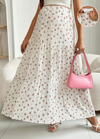 Длинная летняя юбка в цветочке с разрезом на резинке.