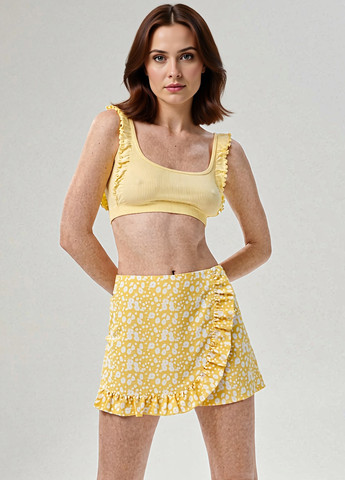 Плиссированная юбка, длина меди, пояс на резинке, декоративная сборка.