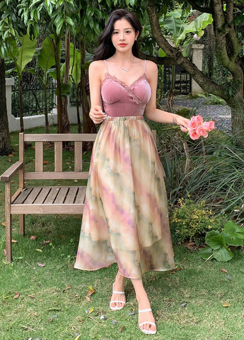 Женская юбка-макси SUMWON Ethereal Tie-Dye. Эта юбка-макси с узором тай-дай и полупрозрачным шифоновым верхом создана для создания струящегося и элегантного образа. Юбка имеет среднюю линию талии и длину макси. Рекомендуется машинная стирка.