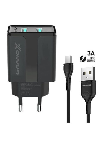 Зарядное устройство Grand-X USB 5V 2,1A USB (CH-03UMB) Black с защитой от перегрузки +