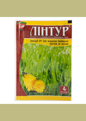 Линтур – системный гербицид для уничтожения сорняков на газонах Линтур – высокоэффективный двухкомпонентный гербицид системного и почвенного действия для борьбы с однолетними и многолетними двудольными сорняками на зеленых газонах и посевах зерновых культур. Состав и действие: Триасульфурон (41 г/кг) — ингибитор синтеза аминокислот, действует через листья и корни, обеспечивает почвенное действие (угнетает прорастание новых сорняков). Дикамба (659 г/кг, соль натрия) быстро проникает в ткани сорняков, накапливается в точках роста и нарушает процессы клеточного деления. Основные преимущества: Широкий спектр действия уничтожает более 200 видов сорняков. Уничтожает как надземную часть сорняков, так и корневую систему. Предупреждает прорастание новых сорняков. Малотоксичный для людей и животных (класс токсичности III, ЛД50 > 2000 мг/кг). Защита до 8 недель после обработки. Препаративная форма: Вододисперсные гранулы (ВДГ) Рекомендации по применению Площадь обработки: 1,5 г препарата на 100 м² газона. Раствор растворить в 3–5 литрах воды, равномерно опрыскать поверхность газона. Температура обработки: +10°C до +25°C. Время обработки: не раньше, чем через 2–3 дня после скашивания. Срок ожидания после обработки: 10 дней. Оптимальные фазы сорняков: Семьядоли - 2 пары настоящих листьев (обычные сорняки) Розетка - для осотов 2-5 колец - для подмаренника Применение в культурах: Культура Норма расхода препарата Рабочий раствор Сорняки Зеленые газоны 1,5 г/100 м² сорняки Озимая пшеница*, яровой ячмень* 1,5 г/100 м² 3–5 л/100 м² Однолетние и многолетние двудольные сорняки *Применение для зерновых культур — в фазе 4-х листьев до конца кущения. Линтур – профессиональное решение для чистого газона без сорняков!
