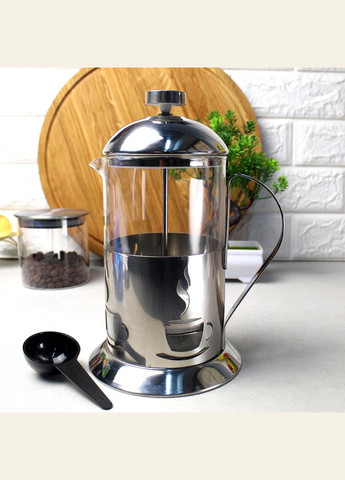 Заварник френчпресс 800 мл для чая и кофе + мерная ложка для кофе Френч-пресс — это лучший способ приготовить ароматный кофе или бодрящий чай методом отстаивания. Функциональность и качество такого френч-пресса принесут Вам только удовольствие от использования, а изысканный дизайн легко впишется в интерьер Вашей кухни