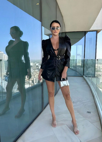 Жакет из ПУ кожи с небольшим растяжением. Стандартный крой и эффектный дизайн рукава. Глубокий V-образный вырез и поясная планка. Ложные карманы.