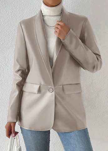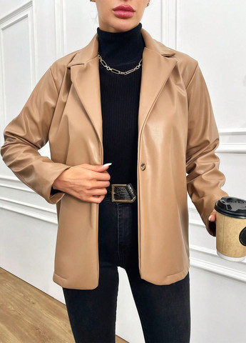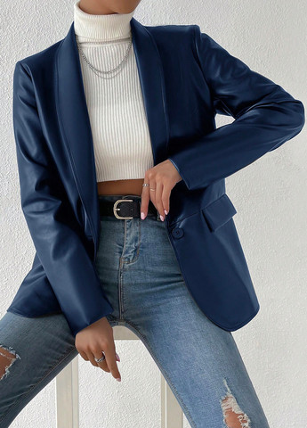 Жакет Chiquease из искусственной кожи. V-образный вырез и длинные рукава. Классический однобортный крой и классический фасон. Подходит как для офиса, так и для повседневной носки.