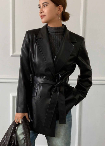 Женский однотонный пиджак DAZY из искусственной кожи с длинным рукавом и поясом. Этот пиджак с отложным воротником и стандартными рукавами предназначен для офиса и повседневной носки. Накладные карманы и двубортная планка. Уход: только влажная чистка.