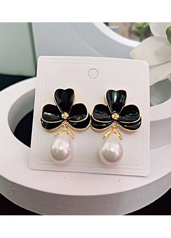 Серьги бижутерия Трендовый цветочный принт и акцентная бусина Бижутерный сплав золотистого цвета Цветок черного цвета Акцентная бусина(имитация жемчужины) подвеска Длина серьги 4.5 см шириной серьга 2.9 см застежка - пусет (гвоздик)