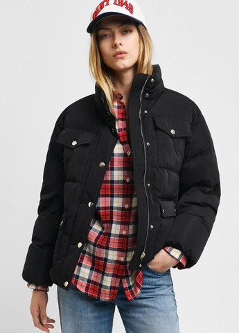 Двойная молния прикрыта планкой с металлическим принтом, воротник стойка с практичным капюшоном внутри, эластичные рукава, боковые карманы на молнии и внутренний карман. Логотип бренда на груди. Тонкий силуэт и изящная отсрочка на талии и бедрах подчеркивают женскую фигуру.