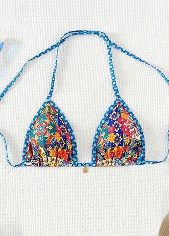 Ультраэластичный и удобный верх бикини, связанный крючком, с завязками на спине и воротником-хомутом. Модель без спинки для максимальной свободы движений. В комплект входит встроенный бюстгальтер для плавания для дополнительной поддержки.