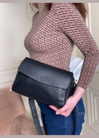 Сумка закрывается клапаном на магнитную застёжку, внутри расположены два отделения с центральной перегородкой на молнии и дополнительными карманами для удобной организации пространства. В неё легко поместить кошелёк, телефон, косметичку и другие необходимые мелочи, поэтому аксессуар отлично подходит для ежедневного использования.