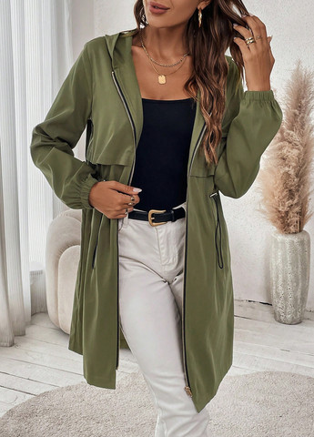 Цвет Хаки / Длина изделия Длинное / Узор Однотонный / Фасон рукава Вшитый / Сезонность Демисезон