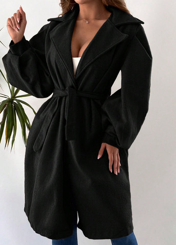 Цвет Черный / Сезонность Демисезон / Тип Без наполнителя / Стиль Кэжуал / Декор Складки / Материал верха Хлопок, Полиэстер / Бренд SHEIN / Узор Однотонный / Длина изделия Длинное / Длина рукава Длинный