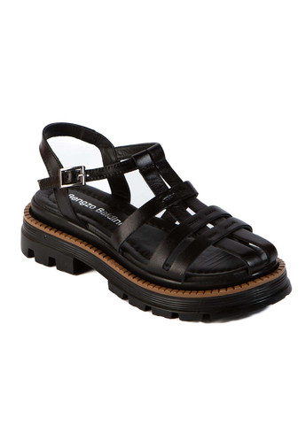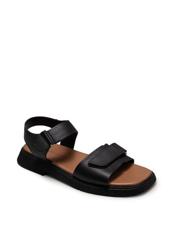 Модные босоножки из натуральной кожи. Стильный дизайн. Удобная и практичная обувь для летнего образа. Цвет модели - черный. Высота платформы 4 см.