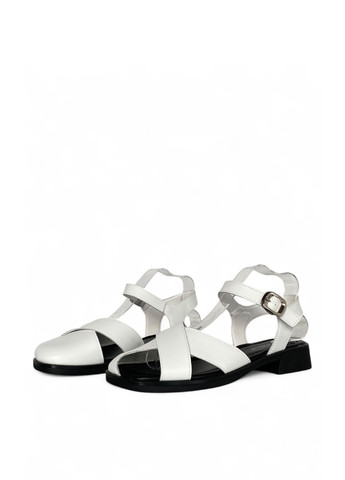 Модные босоножки на низком ходу. Удобная и практичная обувь для летнего образа. Материал верха и стельки - натуральная кожа. Цвет модели - белый.