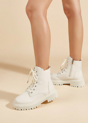 Цвет Светло-бежевый / Состав верха Искусственная кожа / Сезонность Демисезон / Декор Тракторная подошва, Шнуровка / Застежка Молния